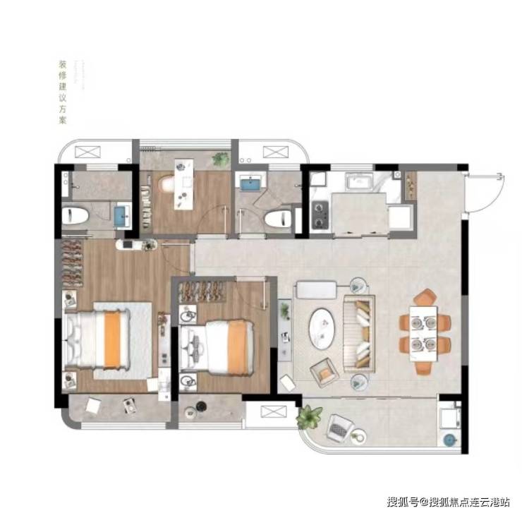 装修交付 :部分房源为 精装修交付 ,主卧配备独立衣帽柜与三分区主卫,提升居住品质。