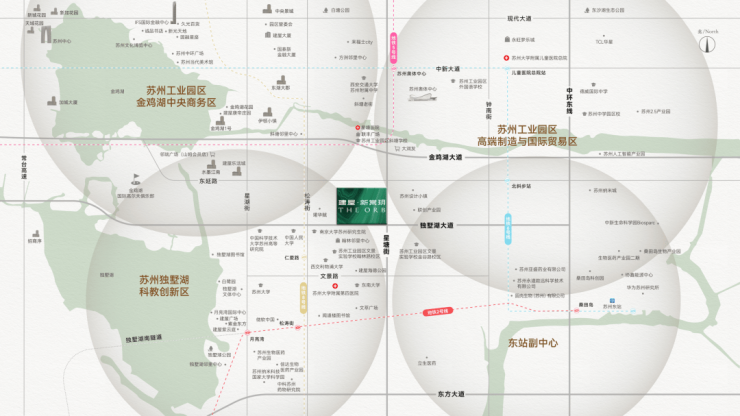 路网发达:独墅湖大道、星塘街、金鸡湖大道、南施街环绕,自驾10分钟覆盖园区核心商圈。
