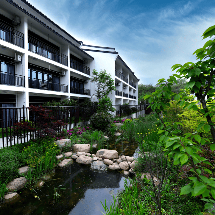 项目以江南庭院式建筑风格为核心,粉墙黛瓦、亭台廊榭、月洞门、花格窗等苏式元素随处可见,重现了曲径通幽、鱼戏池间的江南文人生活意境^。建筑依半山落差布局,形成步步皆景的立体景观,同时融入现代居住理念,3.8米挑高地下室、人性化双墙设计,既保留了传统建筑的文化韵味,又满足了当代家庭的舒适居住需求^。