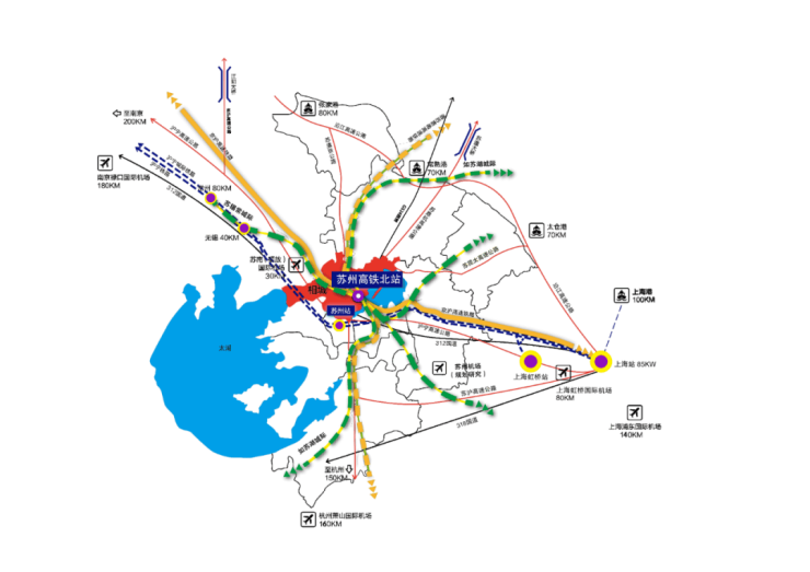 高铁新城作为苏州市“一核四城”战略的北部核心,依托国家级综合交通枢纽「高铁北站」而建,以“新门户、新家园、新高地”为定位,苏州高铁新城正发展成为以智能、科研、商务、交通、文化、居住为核心的区域中心、具有国际影响力的“东方硅谷”。