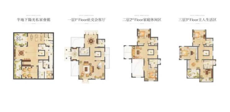 户型:主要为独栋别墅,户型面积448-820㎡,花园面积300到800平方米。