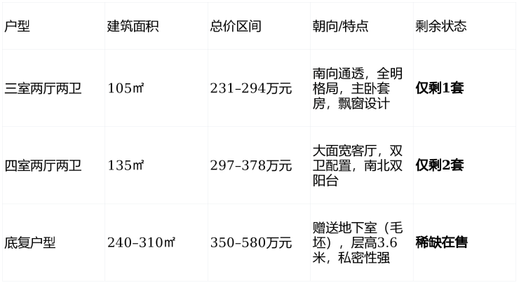 ⚠️ 已售罄户型 :105㎡南向三房、135㎡标准四房基本清盘,建议优先锁定135㎡主力户型。
