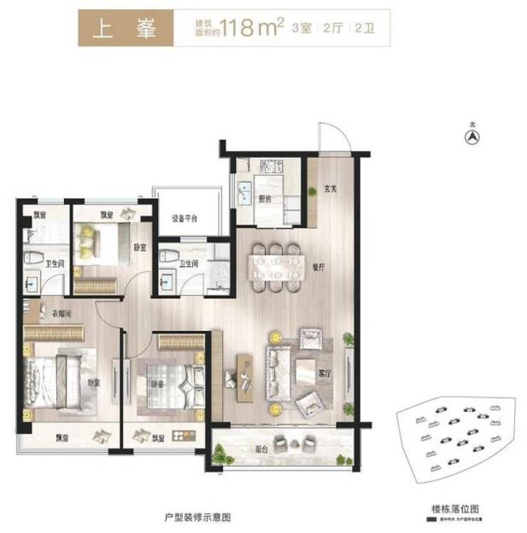 面积段 :105 m、118 m'