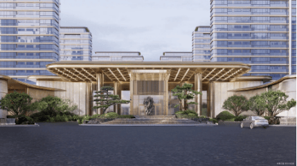 建筑美学:由平仄、梁志天设计集团、笛东、天华四大国际级设计机构联袂操刀,小高层顶部融入宋式官帽元素,寓意“仕运亨通”;外立面采用铝板+石材组合,香槟金铝条勾勒玻璃幕墙,呈现低调奢华的现代新中式风格。