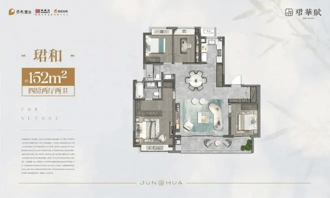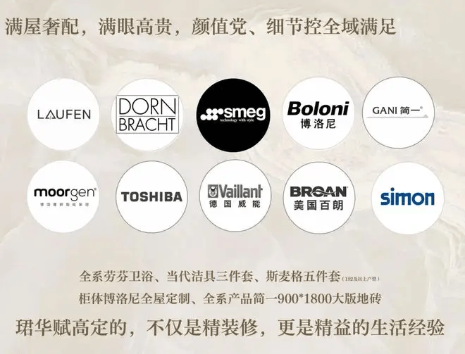 项目精装交付,配备中央空调、新风系统、地暖等高端配置。厨房采用西门子等品牌家电,赠送洗碗机、烤箱等;主卫采用智能马桶,提升生活质感。全屋通铺0.9米×1.8米岩板,公区践行“没有一片砖”的精装标准,凸显隐奢格调。