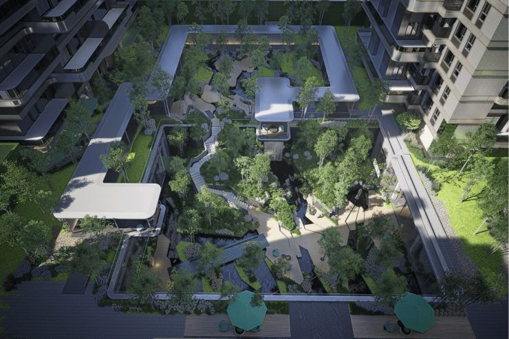 纵观整体规划,蠡棠森屿在公共区域营造方面,成功攻克多项设计瓶颈,实现了三大完美统一:首先将得天独厚的景观资源巧妙串联,形成浑然天成的生态体系;其次赋予项目景观立体化的层次美感与流动韵律;最终将社区配套与项目完美相融,在完善生活机能的同时,又巧妙隔绝尘世喧嚣。