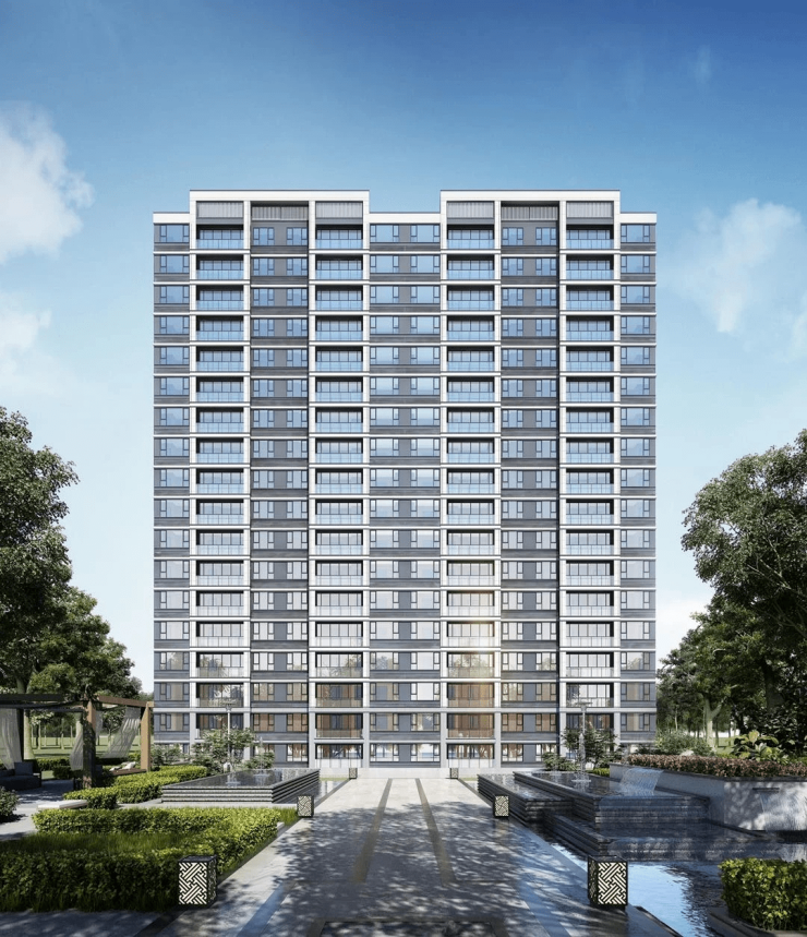 产品类型:9栋15-18层精装高层,总户数492户,容积率2.0-2.2,绿化率37%