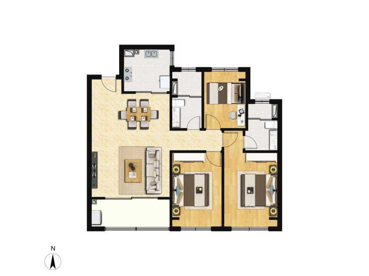 高层112㎡(3房2厅2卫)该户型位于高层的中间户,为两梯四户设计