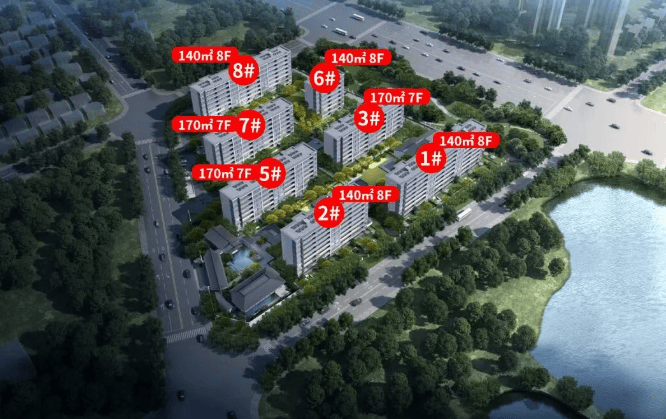 空间设计:主力户型均为140㎡三房两厅、170㎡四房两厅,得房率约78%,方正通透,南北对流,采光优越。