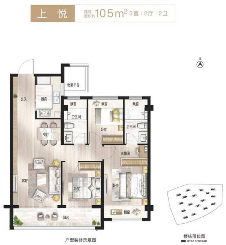 面积段 :105 m、118 m'