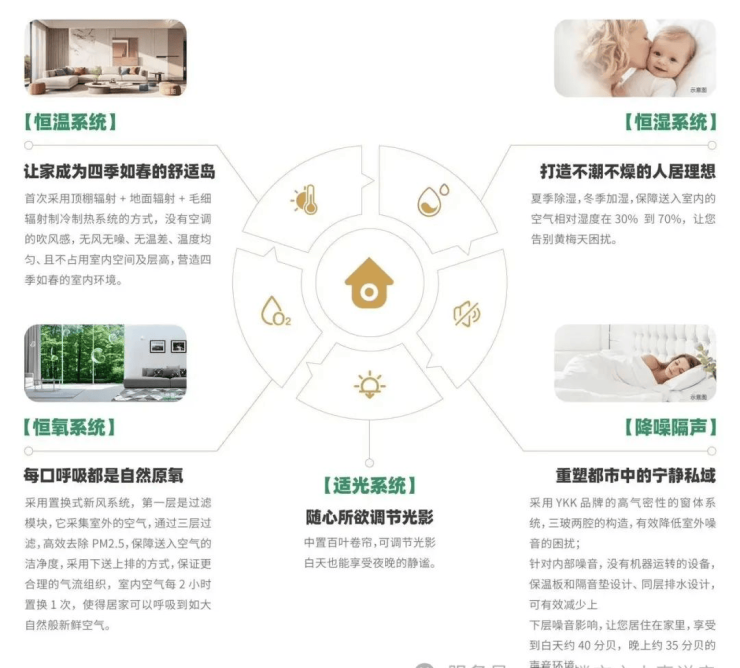 从居住内核出发,项目摒弃传统的三大件,选用高舒适度,低能耗的朗诗三恒科技系统,为您带来更好的居住体验。