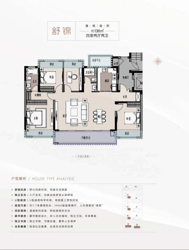 136㎡四房:总价约340万元