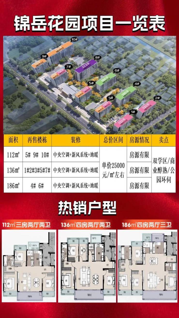 香塘锦岳花园是由太仓市振溪城市发展有限公司(香塘汉华)开发的高端住宅项目,位于太仓市岳阳路与锦州路交汇处,是太仓主城区的核心地段项目。 项目总建筑面积约41,673.67㎡,总户数176户,车位配比1:1.5,容积率仅1.397,绿化率高达38.85%,建筑密度22.33%,打造低密舒适社区。