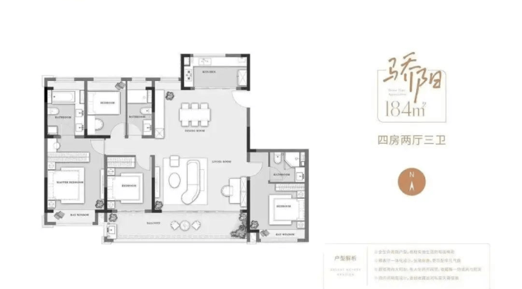 143-184㎡(4室):南北通透,主卧套房+独立衣帽间,部分户型带全景落地窗