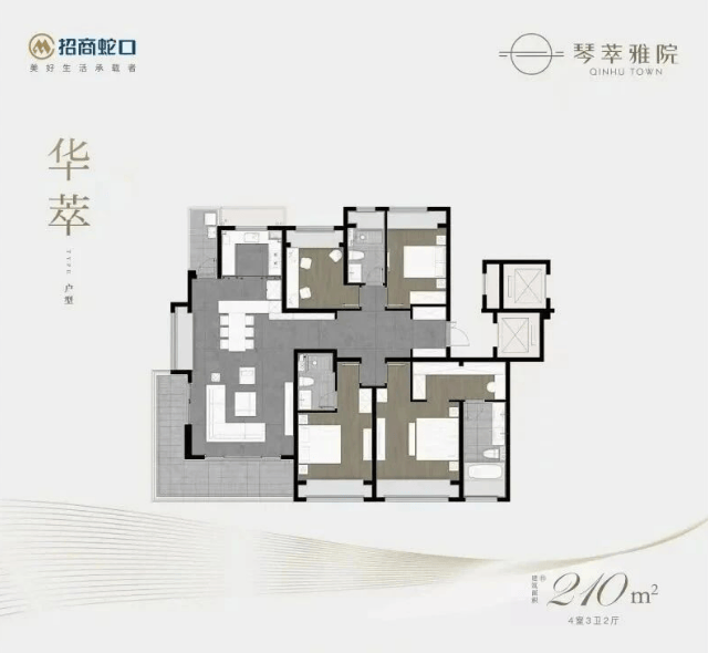 产品稀缺性:琴湖板块内少有的大平层项目,210㎡户型设计独特