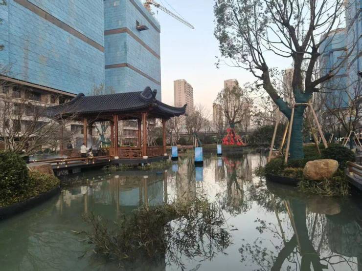 中央水系园林设计:约2/3土地面积设计为水系园林,中央水景近8000㎡,四维景观体系,融合水景、奇石、名贵花木,以现代手法转译"小桥流水人家"的姑苏画境。