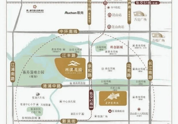主干道:紧邻长江主干路、中环、京沪高速及312国道,自驾便捷;距高铁昆山南站约6公里