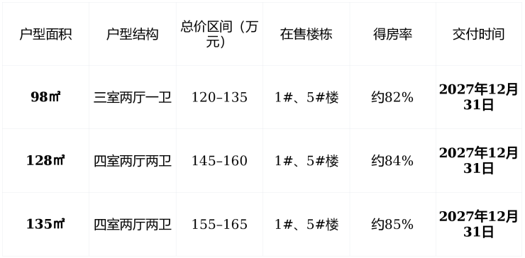 温馨提示 :当前为首批次推售, 135㎡四房户型 为家庭改善首选,建议优先锁定南向景观户。