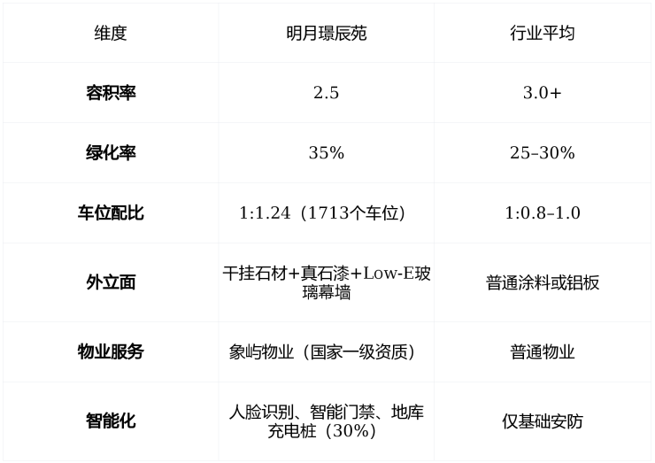 💡 优势提示:同区域竞品多为期房或精装标准1500–1800元/㎡,明月璟辰苑在交付确定性与品质配置上形成明显代差。