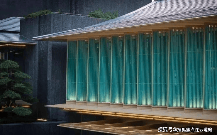 外立面采用靛蓝陶瓦+金色铝框,创新“蓝金坡屋顶”