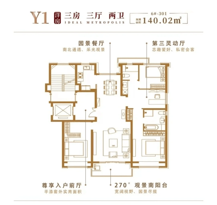 户型特点:南北双庭院、5.2米挑高地下室、私密性强,适合高端改善