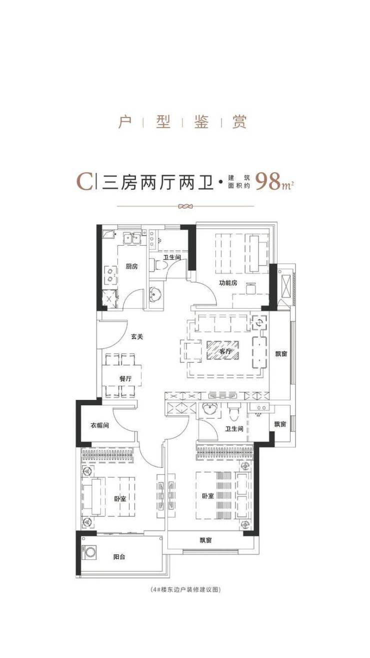 98㎡三居:总价130万-148万元,双卫设计,高得房率