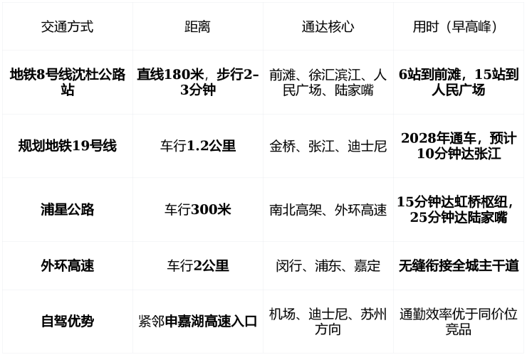 🚇 交通配套:地铁上盖+双高架,6站直达前滩