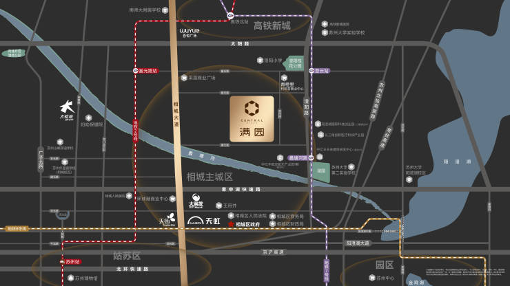 主干道:毗邻相城大道、中环北线、太阳路快速路,西接苏州科技城,东达园区湖东CBD