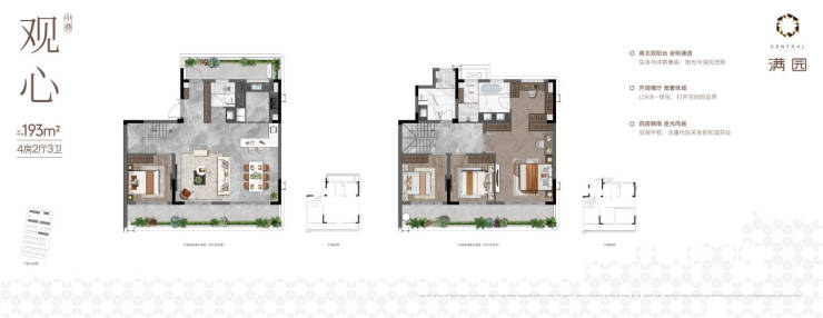 叠墅:168-193㎡(上叠露台70-85㎡,下叠花园70-120㎡)