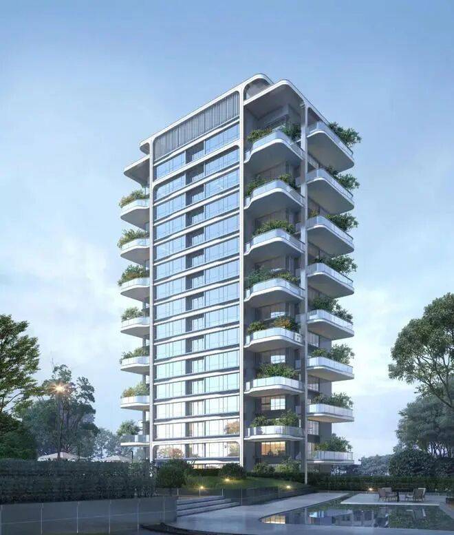 :首创"奇偶错层"设计,每户配建不计容空中花园,实现立体绿化覆盖。