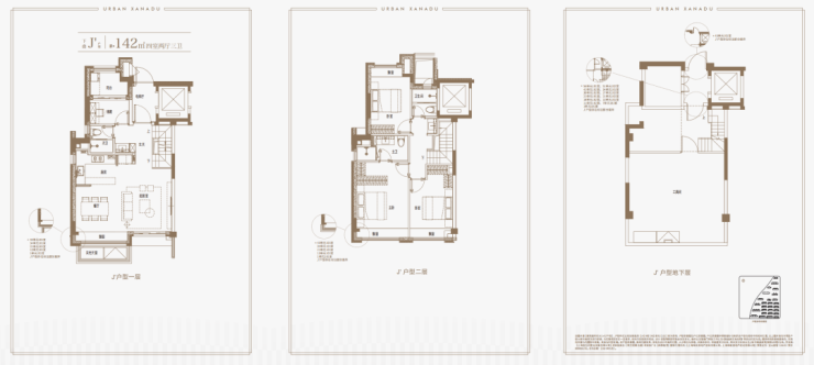 139–143㎡叠墅:四房两厅两卫,独立庭院+星空露台,一层一户,私密性极强,媲美别墅体验;