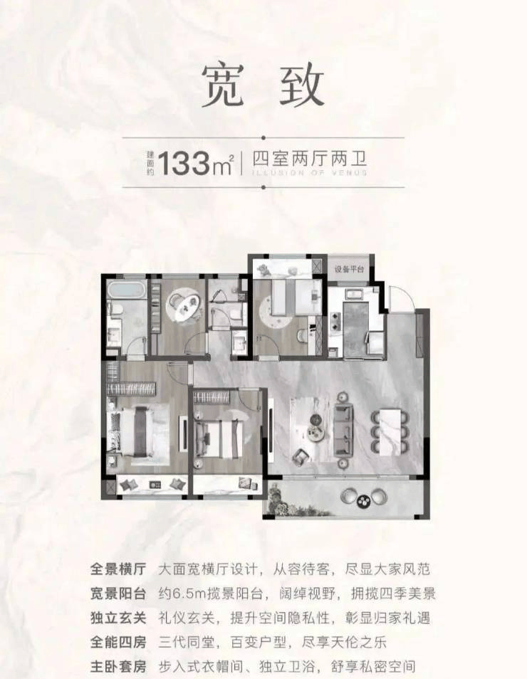 小高层:105㎡(三居室)、133㎡(四居室)