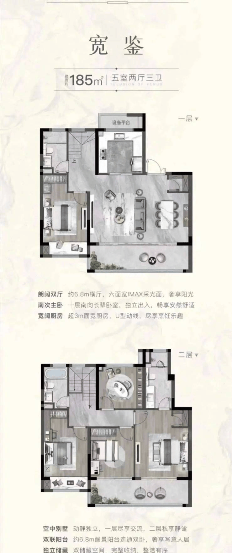 叠加别墅:166㎡(四居室)、185㎡(五居室)