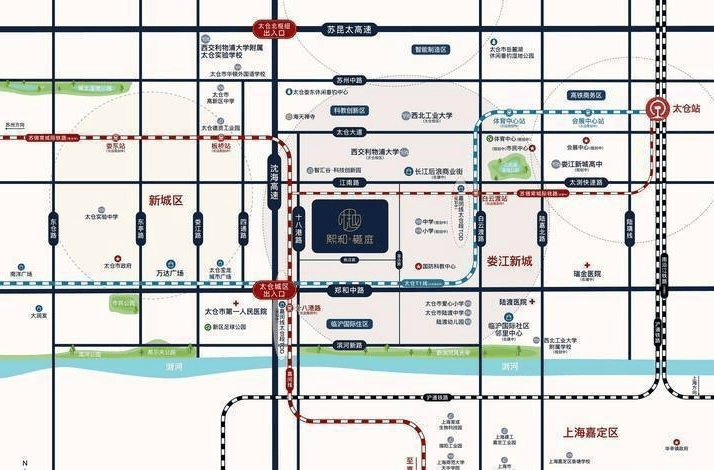 位置:太仓市娄江新城郑和中路与十八港路交汇处向北200米,毗邻规划嘉闵线站点