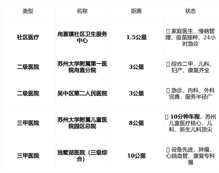 医疗:三甲车程10分钟,日常诊疗无忧