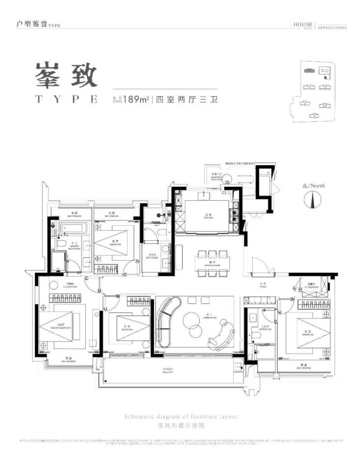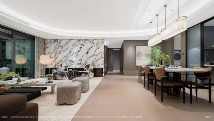 栋式天地叠院立面以铝板勾勒太湖水韵纹脉,1:1.5窗墙比实现光与影的现代演绎。约189㎡户型延续229㎡的WSD世尊设计语言,8.7米双阳台形成270度景观环幕,摩登东方风格通过石材铺装、弧形吊顶等细节贯穿全屋。