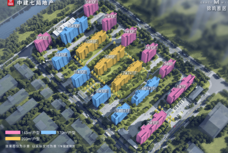 规划户数:420户,由17栋7-10F小高层组成