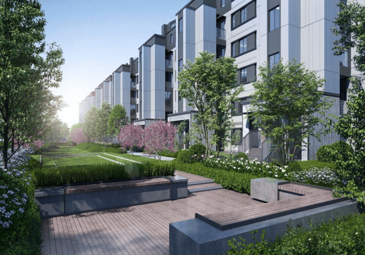 LDK一体化宽厅、私梯入户、中式园林布局(“一轴九巷+中央花园”)