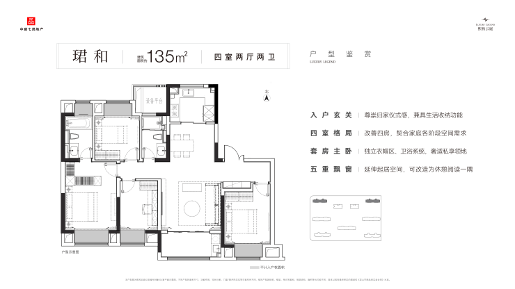 户型居室:【4室2厅1厨2卫】,建筑面积:【135平方米】