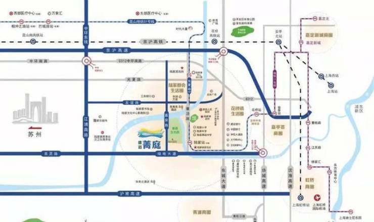 轨道交通:距离苏州地铁11号线(S1线)陆家站约1.1-1.3公里,4站可达上海11号线,实现沪苏便捷通勤