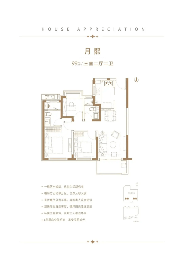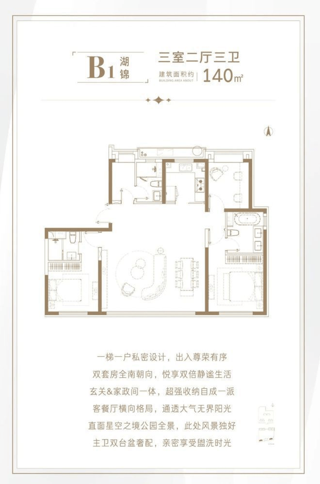 户型:3室2厅3卫(主卧套房设计)