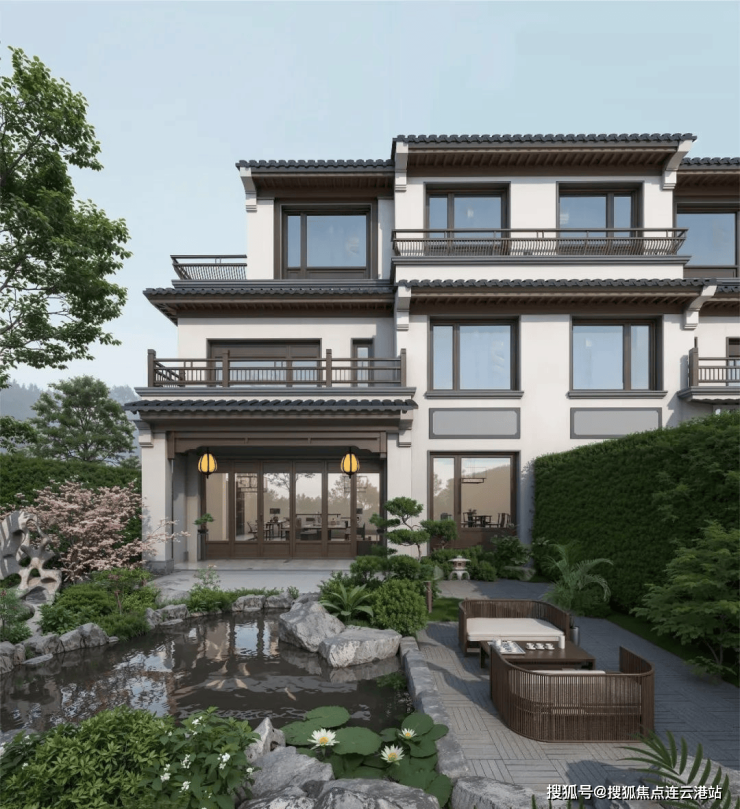 园林:以《江山秋色图》为蓝本,植入黑金砂石与珍稀花木