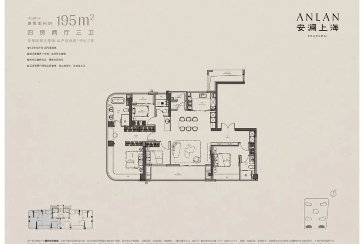 192㎡–195㎡ 四房:全景舱设计,三面环幕采光,总价2700万–3400万元