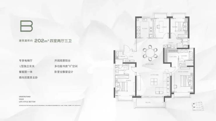 253㎡4房2厅4卫:层高3.3米,纵向双厅布局