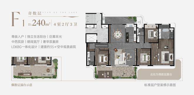 户户标配15–35㎡空中庭院,部分户型拥有270°弧形转角露台,可改造成家庭影院、空中花园;