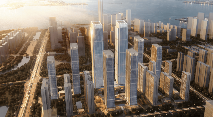 地标高度:项目包含两栋 268 米的超高层科研办公楼(六期主体已封顶)及多栋 200 米级商务楼,建成后将成为东太湖畔的视觉焦点。