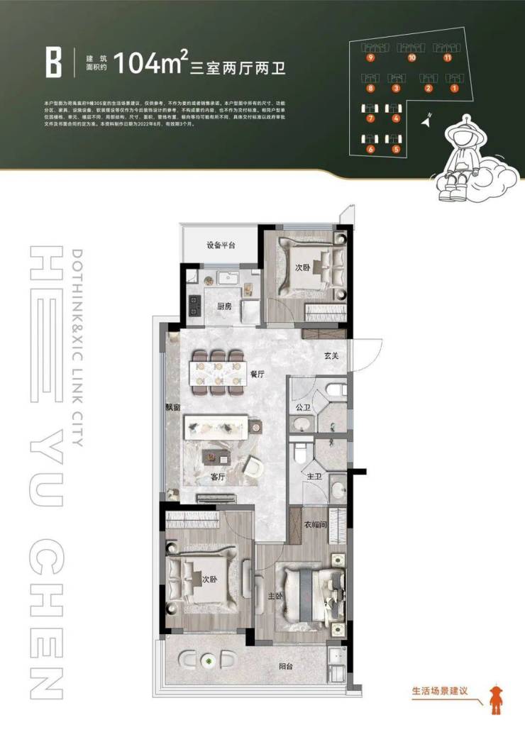 在荷禹宸府即将首开的楼幢中,将为购房者提供96㎡、104㎡、127㎡三款户型的选择。