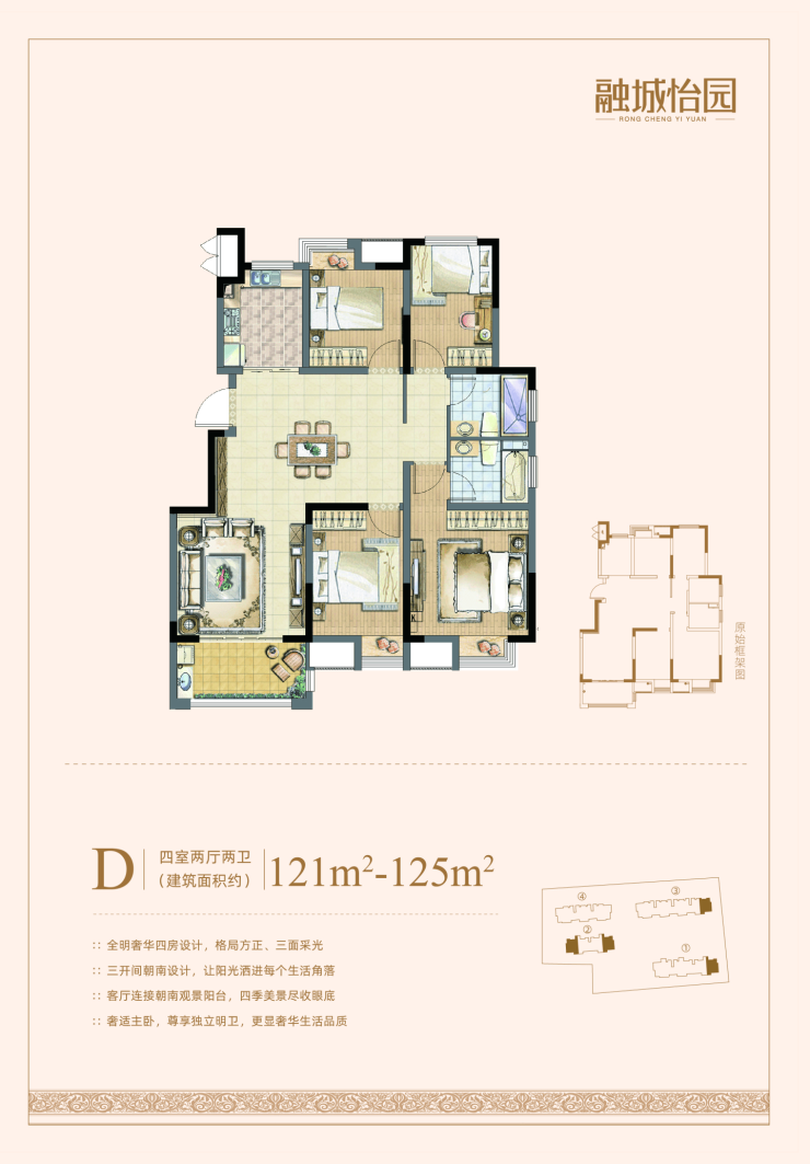 103–125㎡四居:适合改善型家庭,总价约145万–210万元