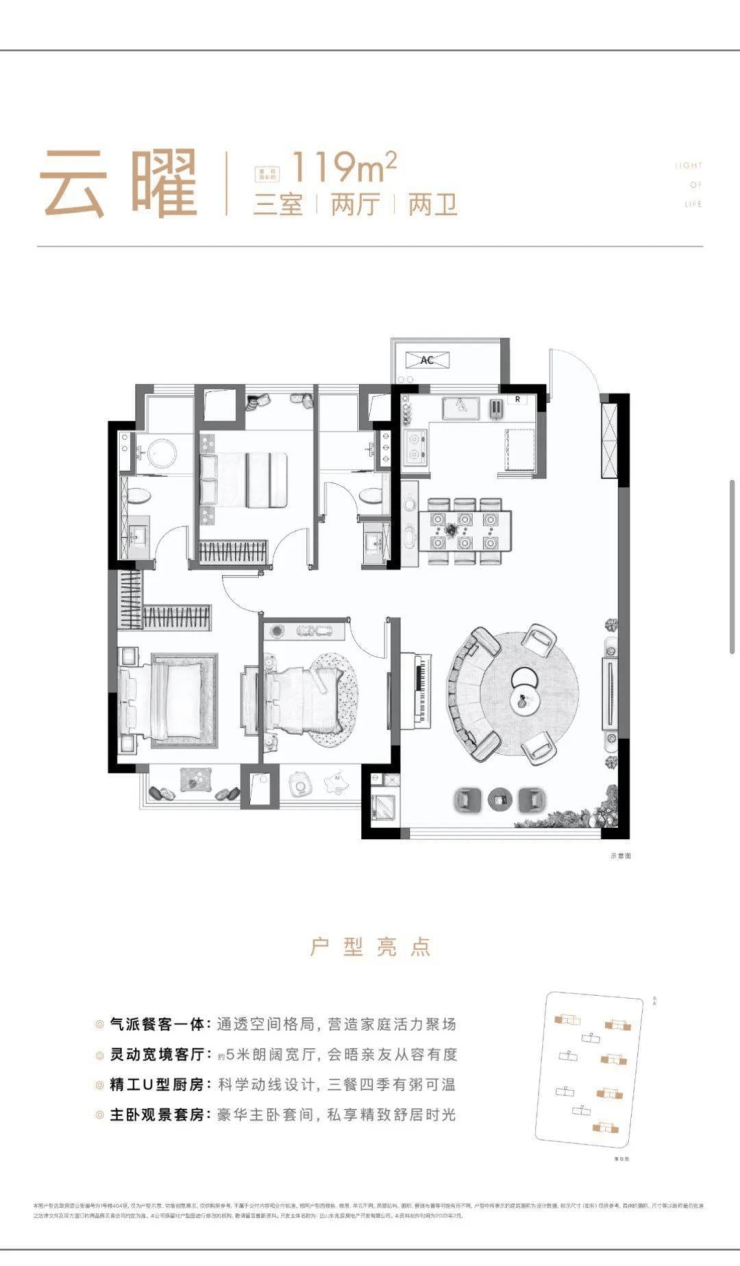 119㎡三居室:通透布局,采光优越,总价约178万-200万