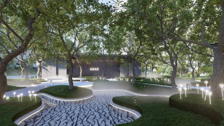 社区设计:采用“一环两轴九大空间”布局,配备星空夜跑道、童趣乐园、林下会客区等全龄化设施
